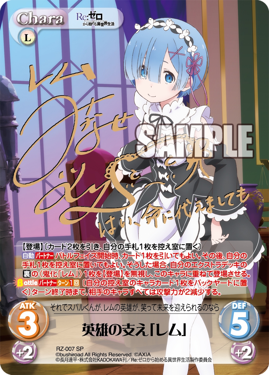 パック や 17年9月10日に新作OVAの制作決定が報じられ 、第1弾『Reゼロから始める異世界生活 Memory Snow』が18年10月6ヴァイスシュヴァルツ×ChaosTCG「Reゼロから始める異世界生活」クロスキャンペーン特典 ChaosTCGのPRカード全5種のうち、1枚をボックス内にランダム封入! ※再販分には封入されておりません。 出演声優の豪華箔押しサインカードを収録! · Reゼロから始める異世界生活 リゼロ可愛い見た目で超強い!精霊パックの5つの謎を解き明かす カテゴリーまとめはこちら:Reゼロから始める異世界生活